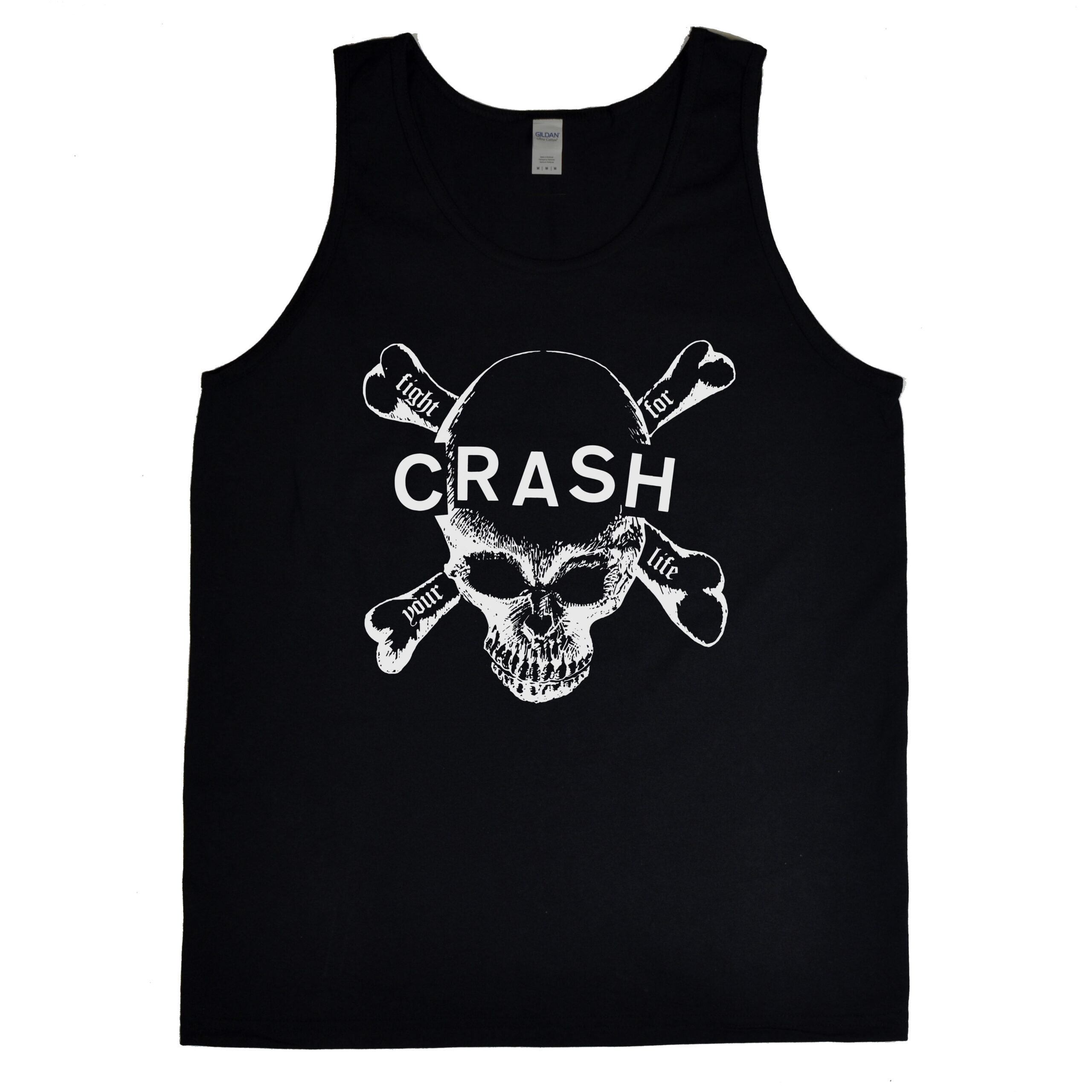Crash “Fight for your Life” men’s 100% cotton tank top. Classic fit and slightly slim. Water-based ink.