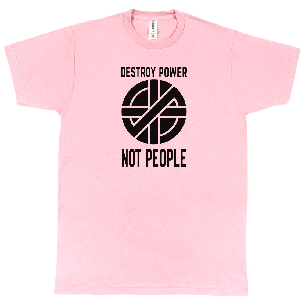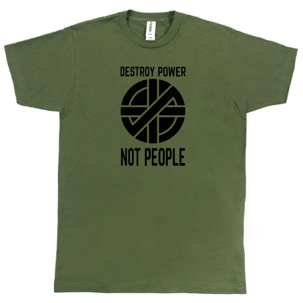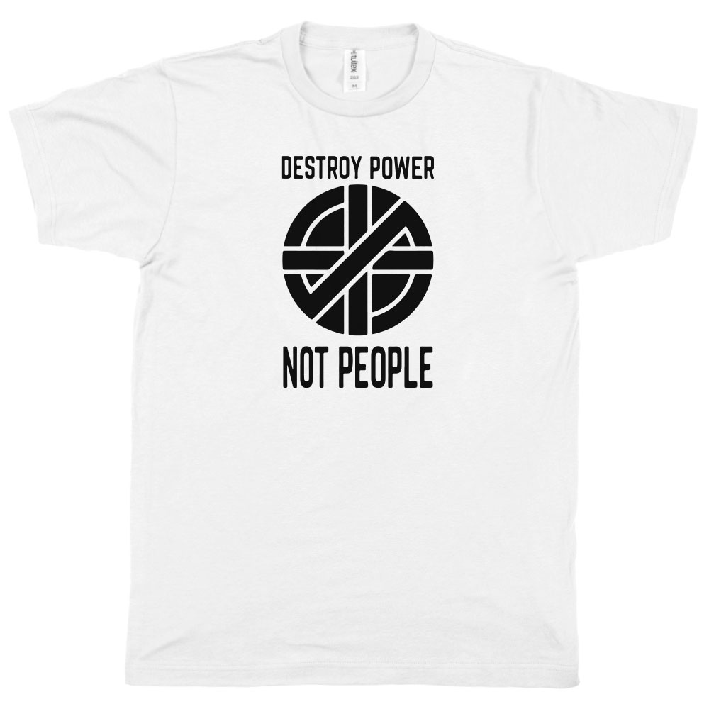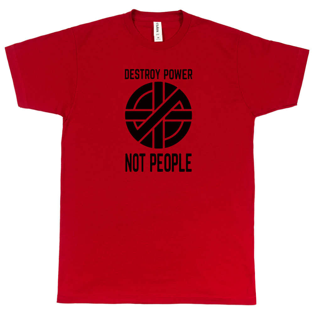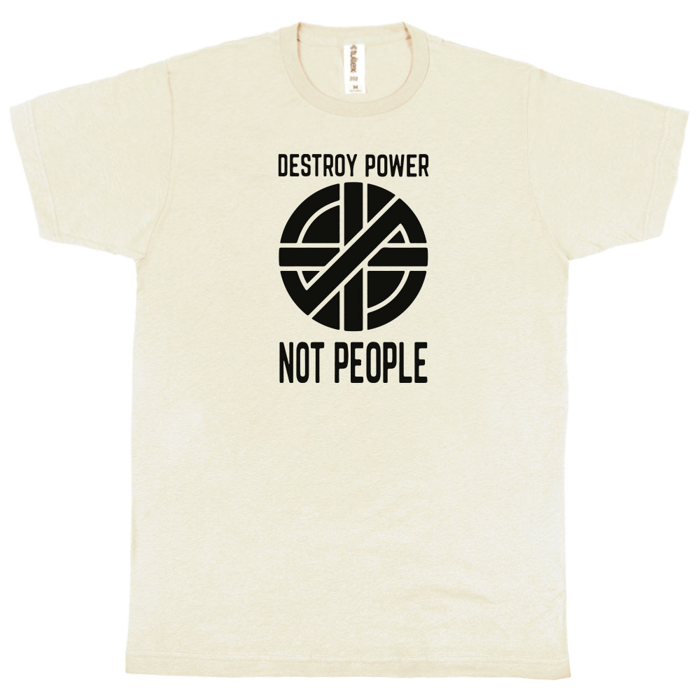 Crass “Destroy Power Not People” shirt on men’s 100% cotton, fitted t-shirt. Water-based ink, soft to the touch. Natural stretch during wear and great recovery after wash.