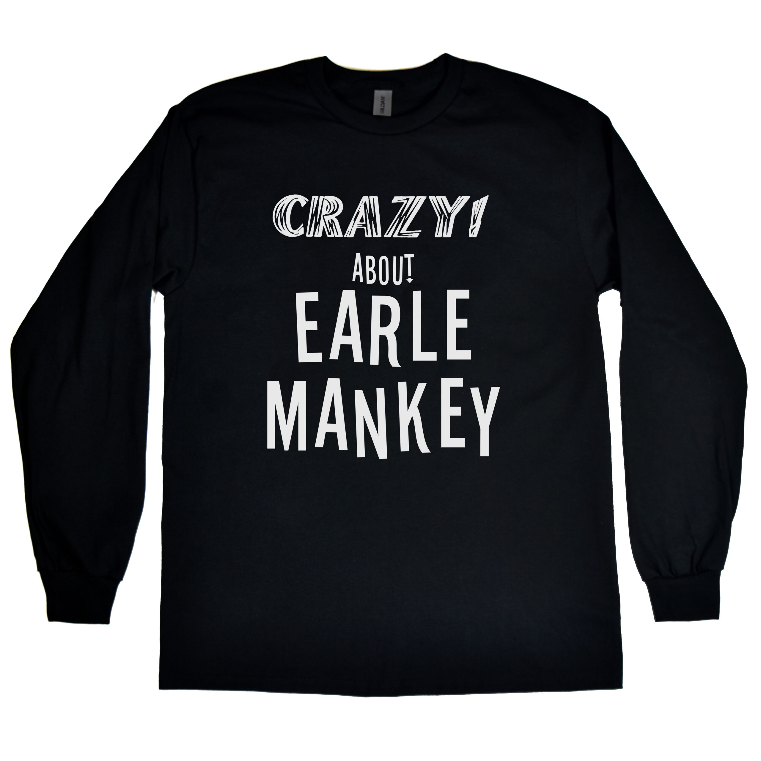 Crazy About Earle Mankey men’s 100% cotton long sleeve shirt. Classic fit and slightly slim. Water-based ink.